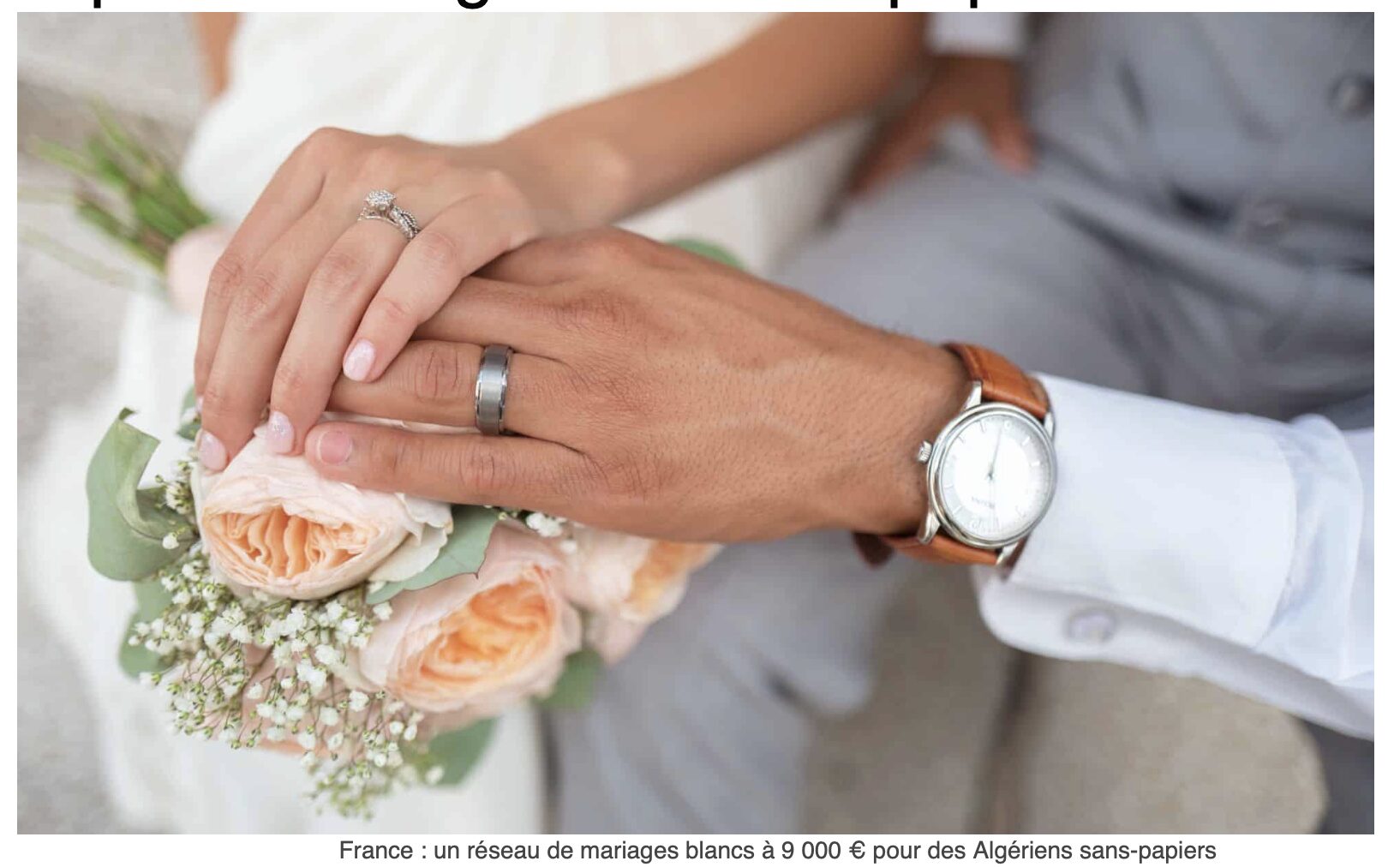 Un réseau de mariages blancs a été démantelé en France, après près de deux ans d’activité. L’enquête a mis en lumière un système structuré permettant à des ressortissants algériens en situation irrégulière d’obtenir des titres de séjour. Plusieurs personnes ont été interpellées et mises en examen dans cette affaire. par Ali Aomar, 16 avril 2026