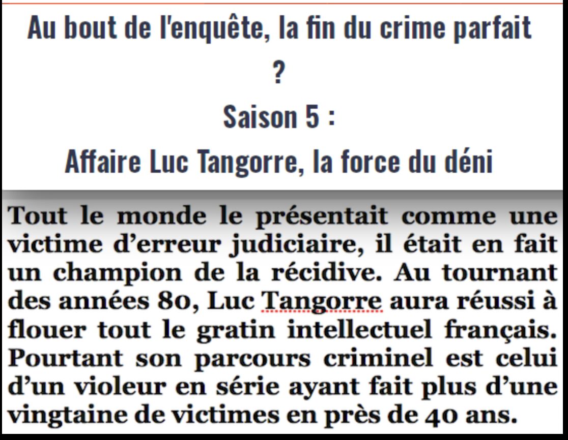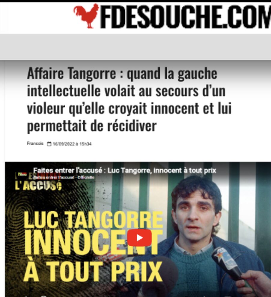 Cette affaire Luc Tangorre, aussi extraordinaire qu’elle paraisse…-un condamné qui, par deux fois, récidive à peine remis en liberté et qui, malgré ces récidives aussi criminelles que les précédentes, est défendu par les mêmes soutiens souvent « intellectuels » (sous-entendu « de gauche » !) parmi lesquels une majorité de… femmes !-n’a été que les prémisses de notre dernière décennie avec de nombreuses, trop nombreuses affaires criminelles où les victimes ont eu le tort de ne pas être dans la bonne catégorie du tri établi par certaines associations dites « féministes » mais de gauche ! Et, surtout, dont les auteurs de faits criminels avaient, eux, la «chance» de cocher les bons critères d’origine ayant l’adhésion des associations dites « caritatives » en matière de défense des victimes d’attaques… sexuelles ! Avec de telles associations autant voire plus à gauche que les personnalités ayant défendu… Luc Tangorre, il vaut mieux être auteur de crimes que victimes de ces crimes !