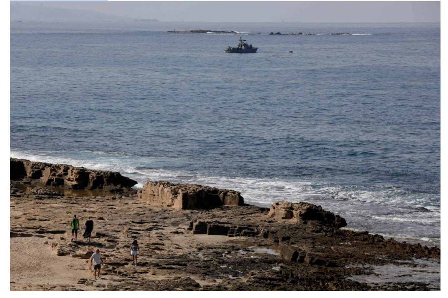 Un navire de guerre israélien au large de la localité frontalière de Rosh Hanikra, à proximité de Ras el-Naqoura au Liban-Sud, le 7 octobre 2022. Photo d’archives Jalaa Marey/AFP