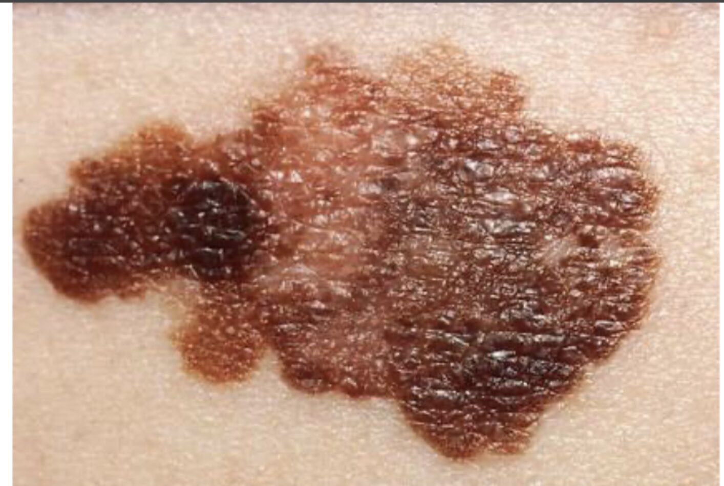 Le mélanome cutané est une tumeur maligne de la peau qui se développe à partir des mélanocytes, les cellules responsables de la pigmentation de notre peau. Bien qu’il ne représente qu’environ 10 % des cancers de la peau, c’est la forme la plus grave de cancer de la peau en raison de sa forte capacité à métastaser rapidement vers d’autres organes (poumons, cerveau, foie).